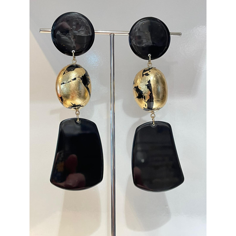 Bijou en résine, feuille d'or et laiton doré à l'or fin