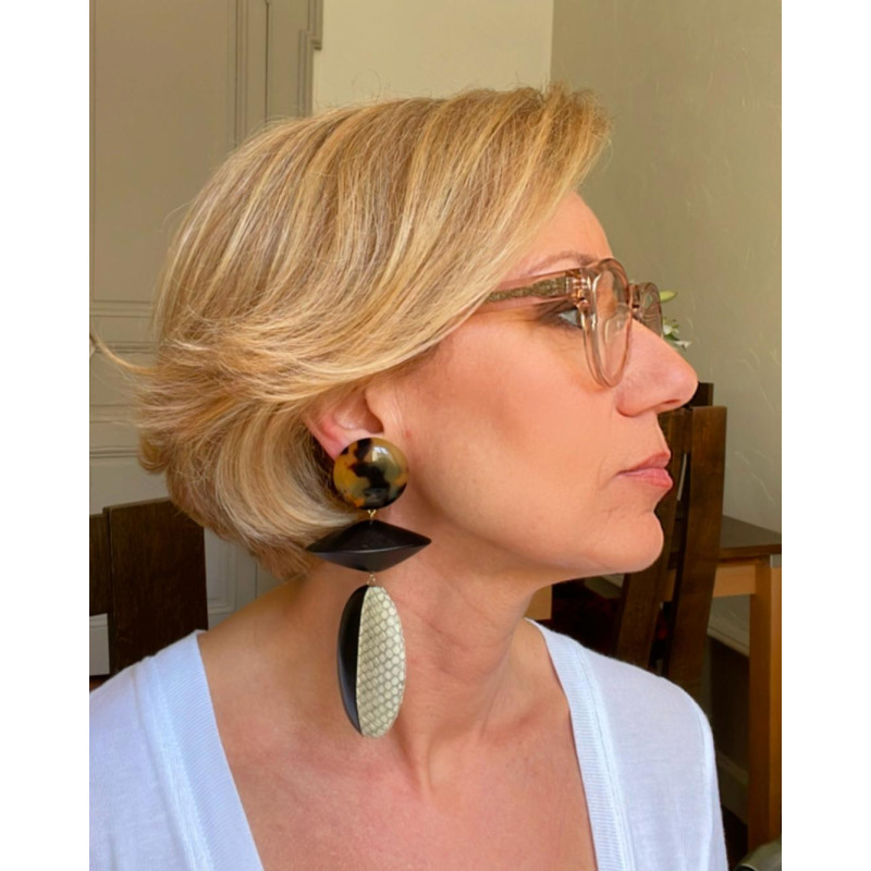 Cette paire de boucles d'oreilles est une pièce originale qui peut s'associer à votre dressing très facilement,