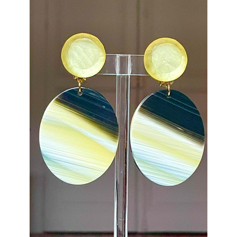 Bijou en acétate de cellulose, résine et laiton doré à l'or fin