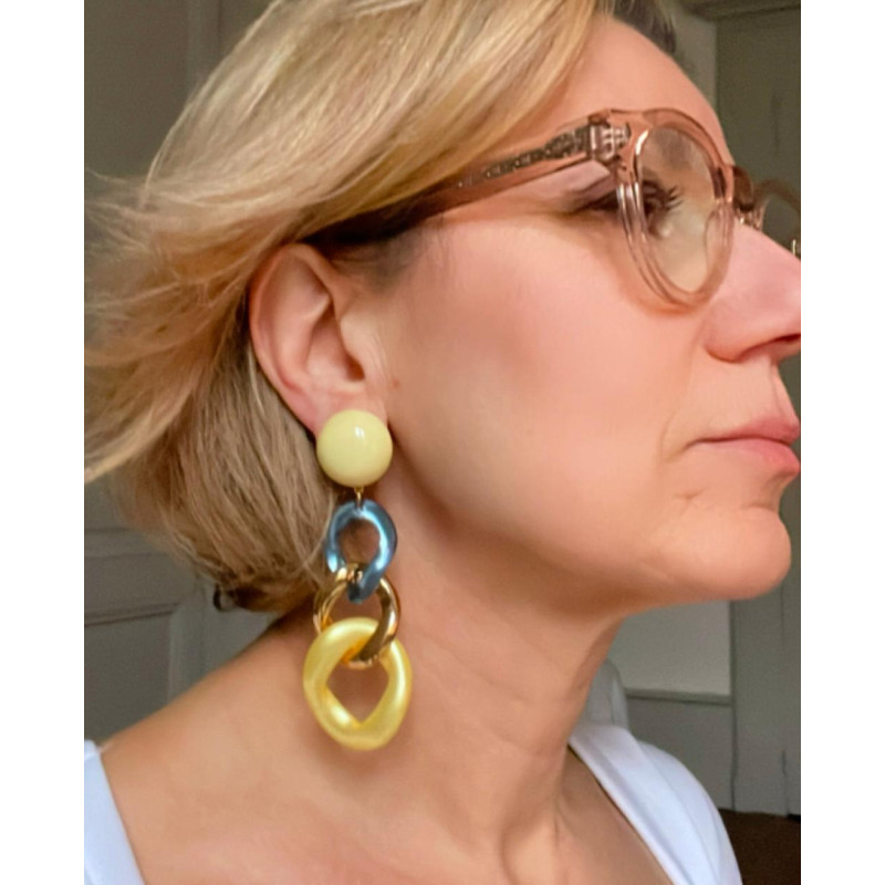Cette paire de boucles d'oreilles est une pièce originale qui peut s'associer à votre dressing très facilement,