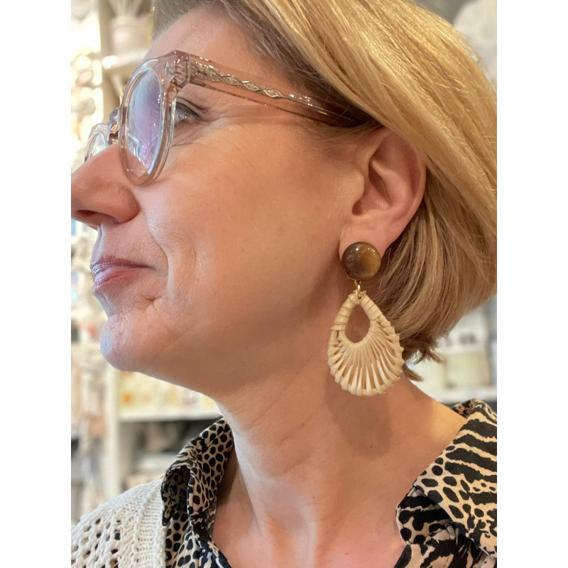Bijou en résine, Raphia et laiton doré à l'or fin