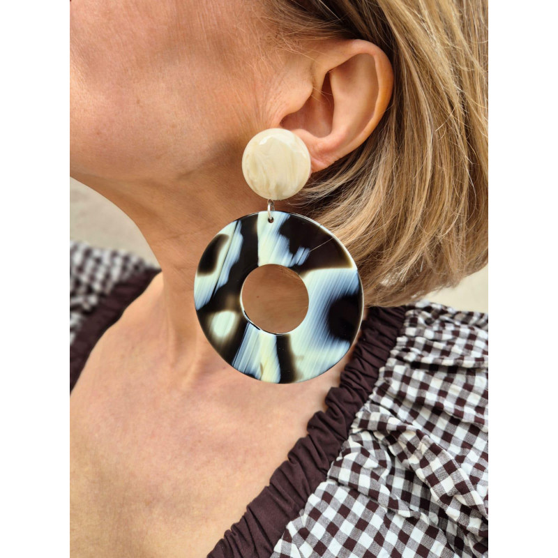Bijou en acétate de cellulose, résine & Laiton rhodié