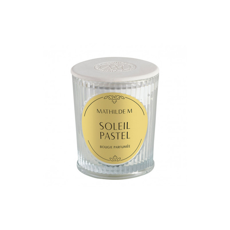 Véritable objet de décoration, cette bougie Les Intemporelles parfume agréablement à chaud comme à froid. Son écrin de verre côtelé est coiffé d'un élégant couvercle en plâtre réalisé à la main et marqué du sceau Mathilde M. Elle possède une mèche 100% coton et est composée d'une cire de haute qualité, mélange équilibré de cire végétale de soja et de cire minérale pour garantir un parfumage optimal. Allumée, elle crée instantanément une ambiance chaleureuse dans votre intérieur.