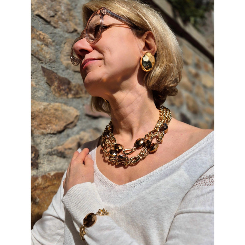 Bijou en cristal, perle de Majorque et laiton doré à l'or fin, finition en acétate de cellulose