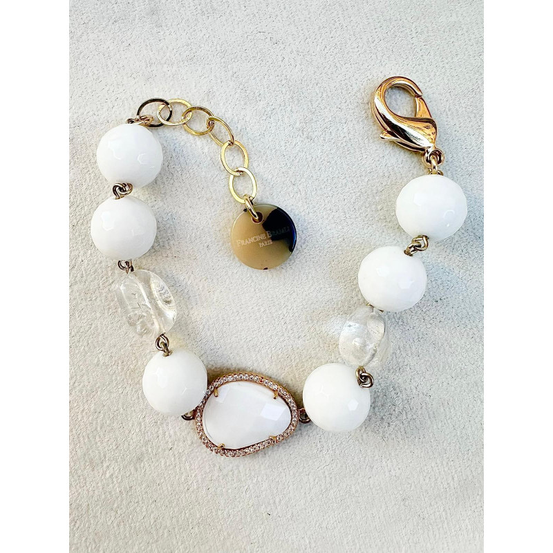 BRACELET jonc blanc irisé & cristaux - Francine BRAMLI Paris