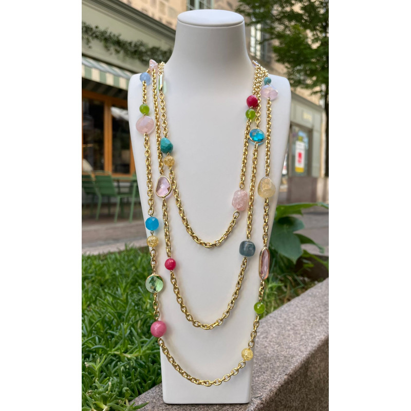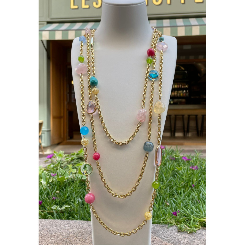 Bijou en pierres fines, cristal, chaine en laiton doré à l'or fin finition en acétate de cellulose