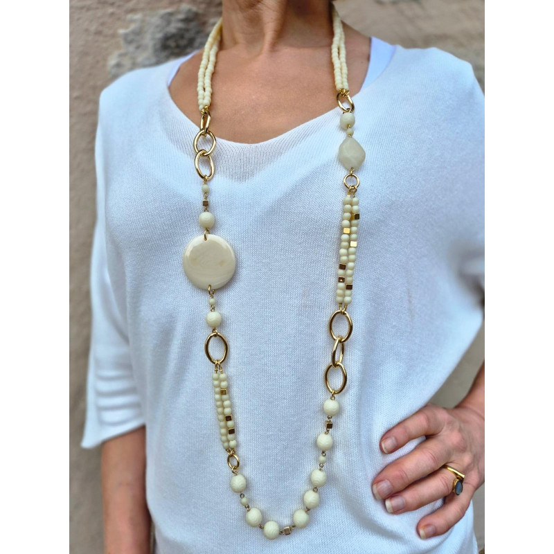 KEN Maillons Beige & doré - FRANCINE BRAMLI Paris collier