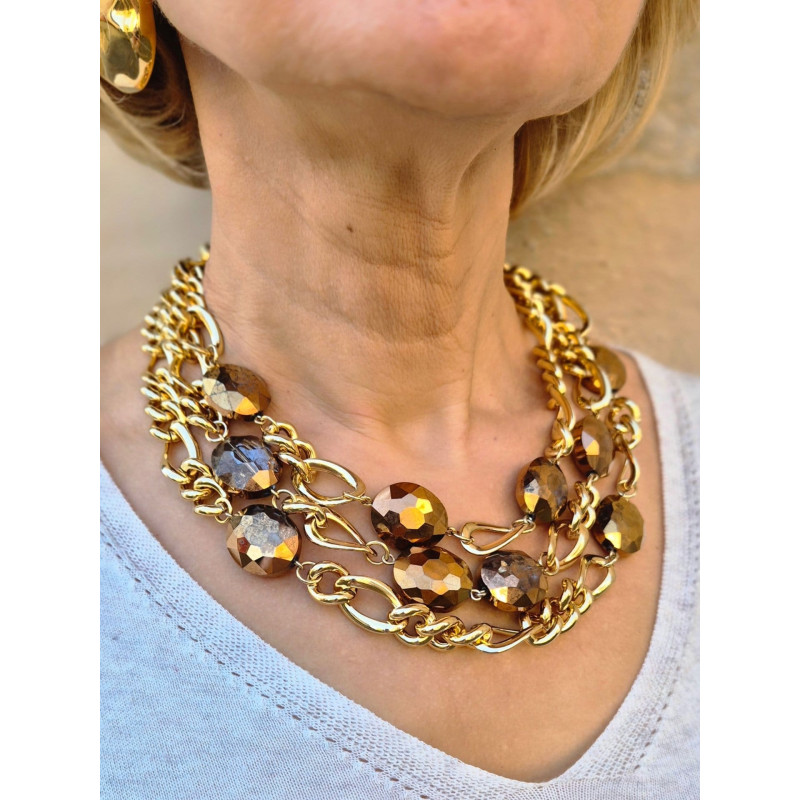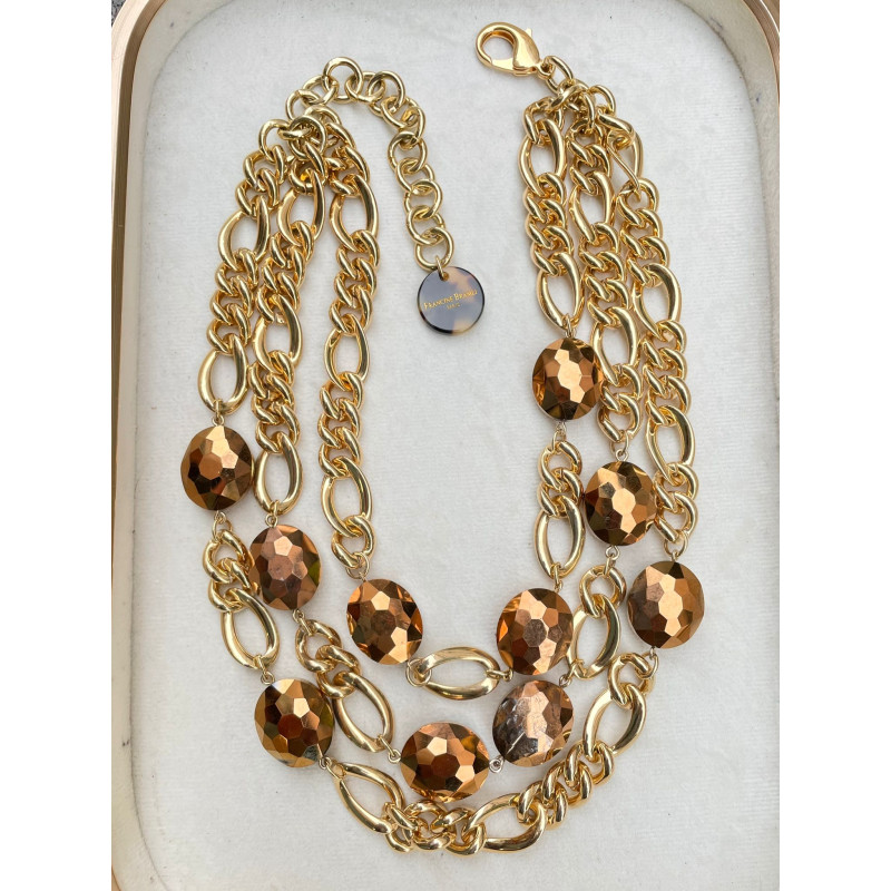 MARIO maillons bruns, rosés - Francine BRAMLI PARIS Collier