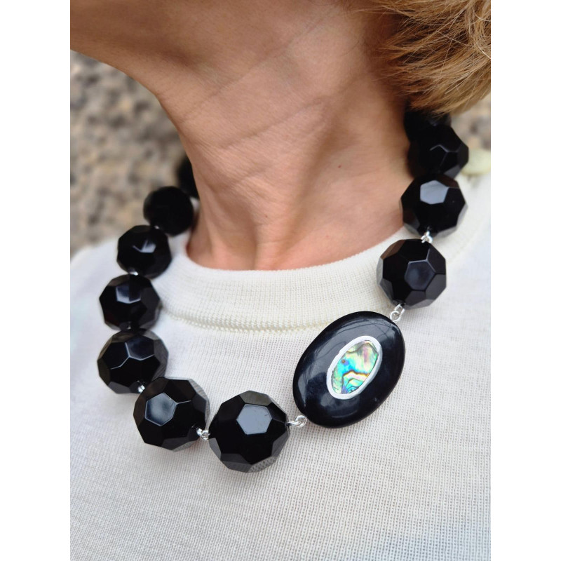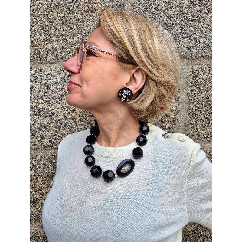 KEN Maillons Blanc, noir, argent, nacré - FRANCINE BRAMLI PARIS collier
