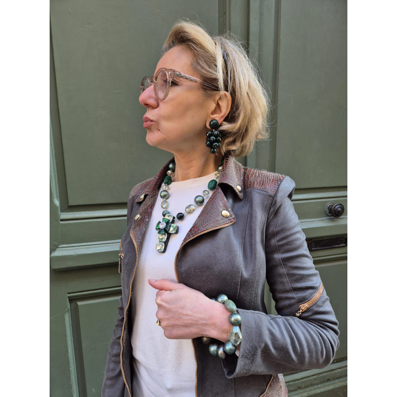 AMORE coeur Galuchat & Cristal vert - Francine BRAMLI Paris Collier