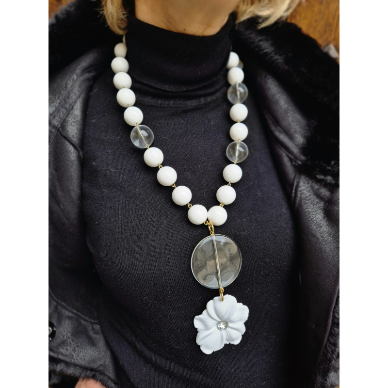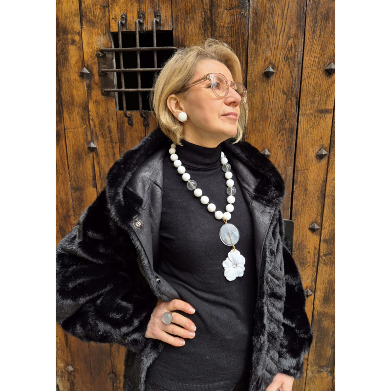 KEN Maillons Blanc, noir, argent, nacré - FRANCINE BRAMLI PARIS collier