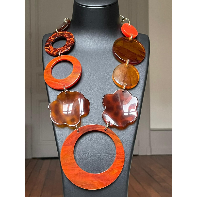MARIO maillons rouges & écaille - Francine BRAMLI PARIS Collier