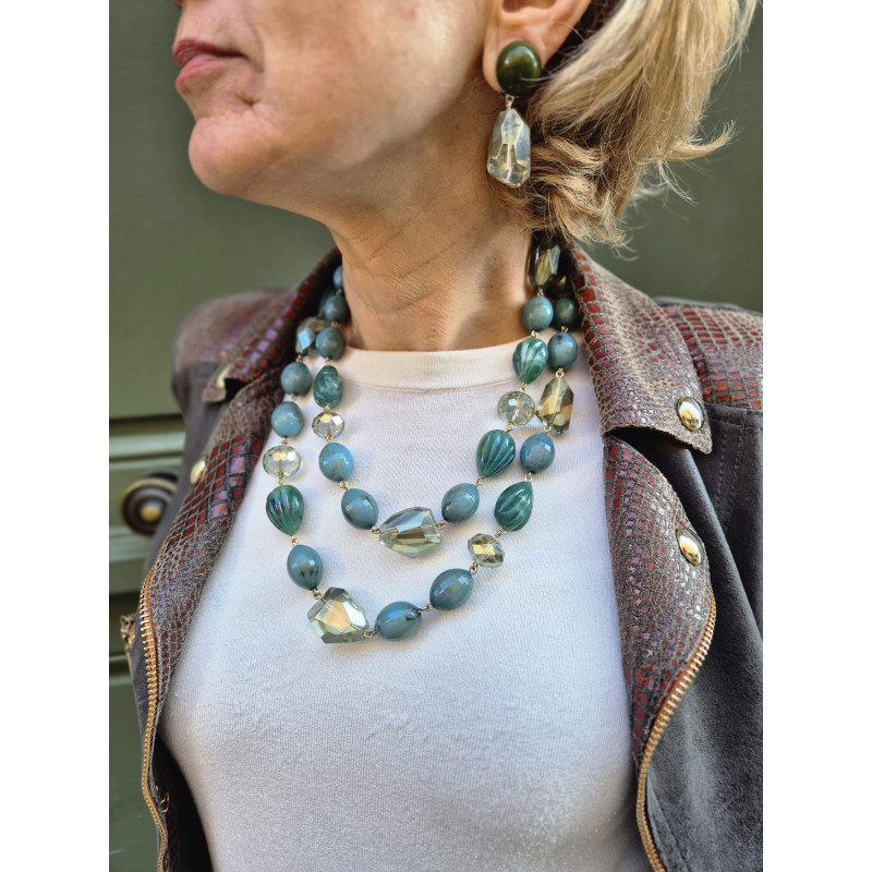 KEN Maillons Rock'n roll bleu vert - FRANCINE BRAMLI PARIS collier