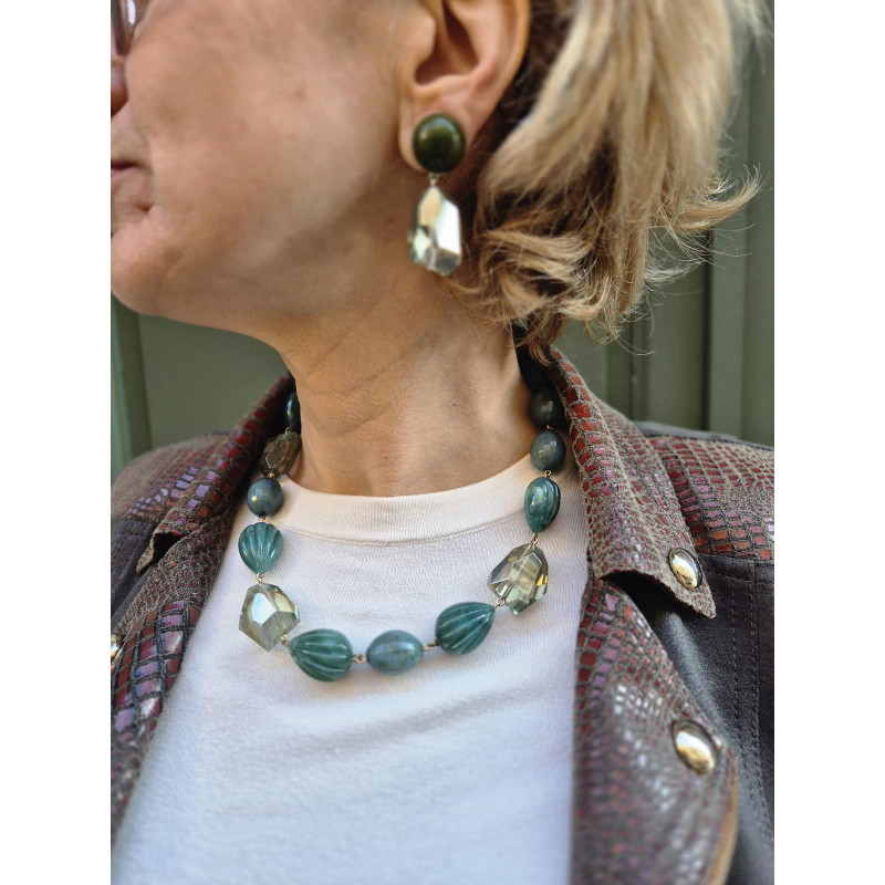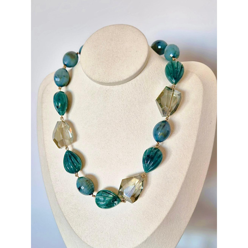 KEN Maillons Rock'n roll bleu vert - FRANCINE BRAMLI PARIS collier