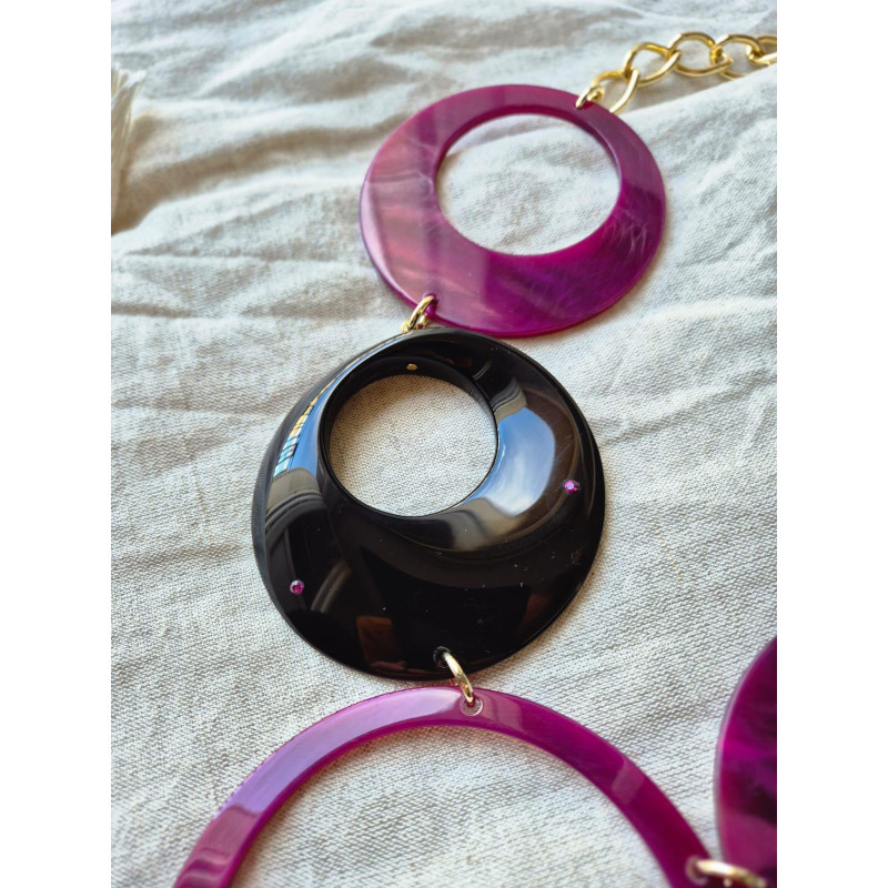 Bijou en résine, cristal avec chaîne de réglage en laiton doré à l'or fin, finition en acétate de cellulose.