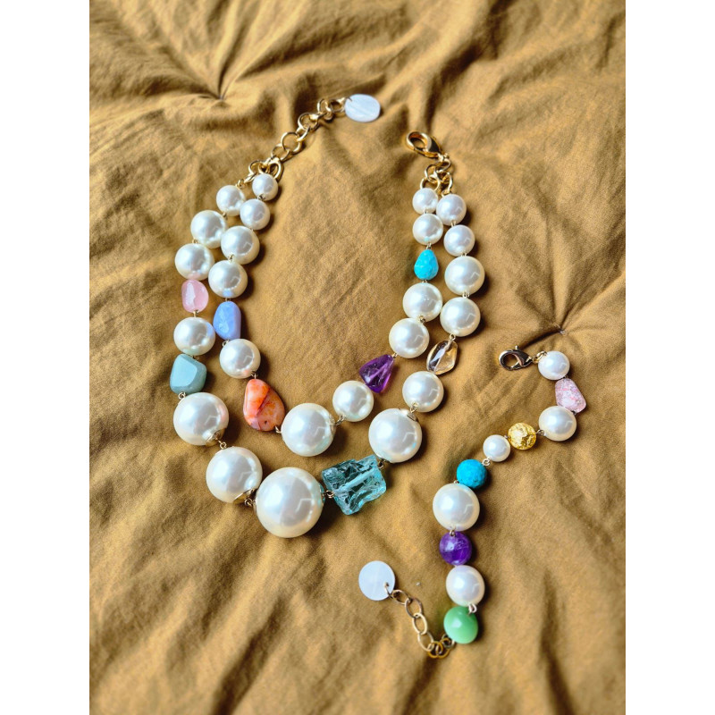 Bijou en résine et pierres naturelles avec chaîne de réglage en laiton doré à l'or fin, finition en acétate de cellulose.