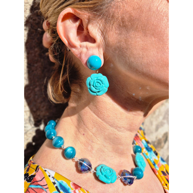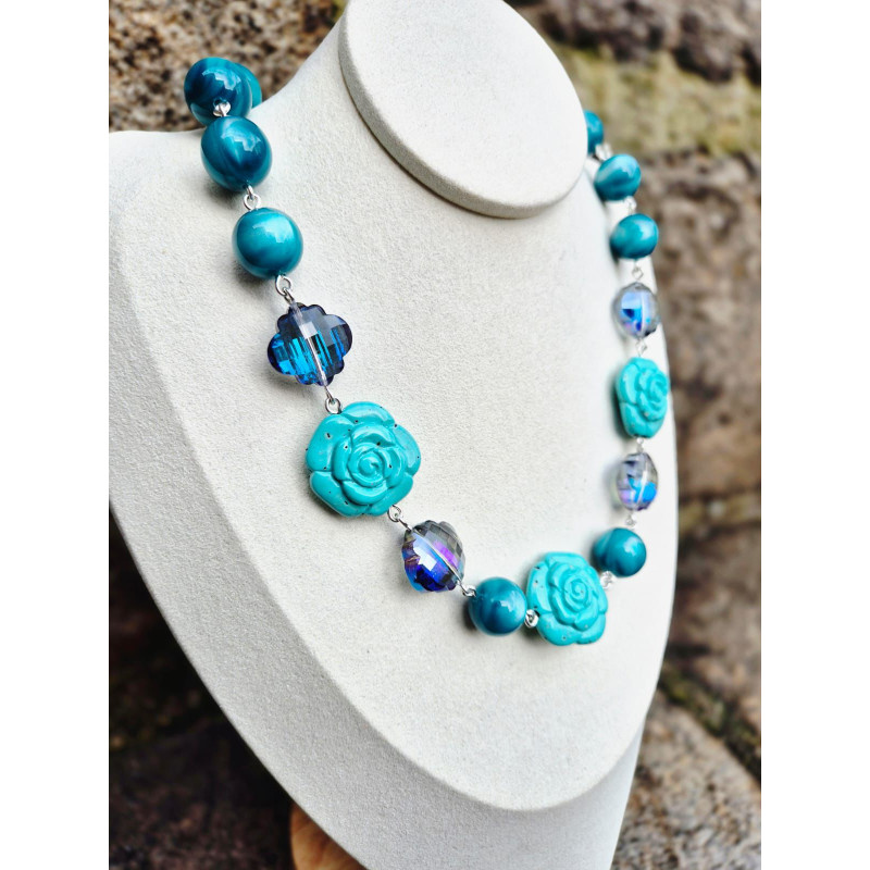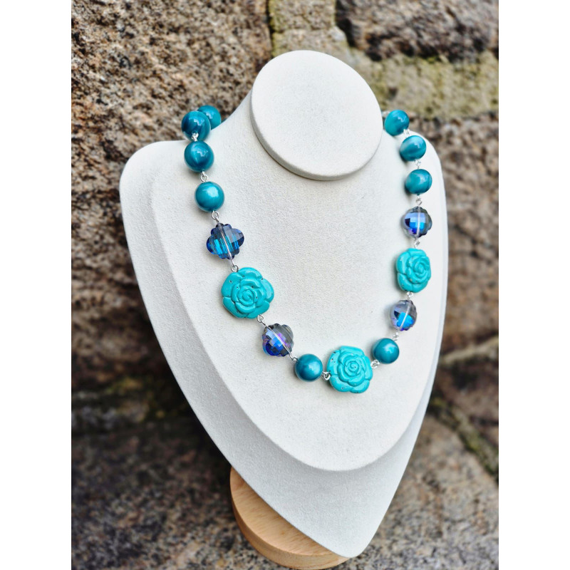 AMORE Turquoise coeur Nacre & cristal - Francine BRAMLI Paris Collier