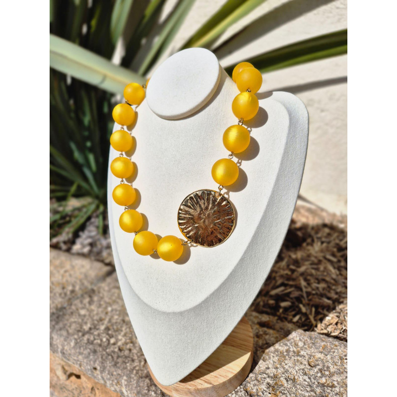 Bijou en résine avec chaîne de réglage en laiton doré a l'or fin.