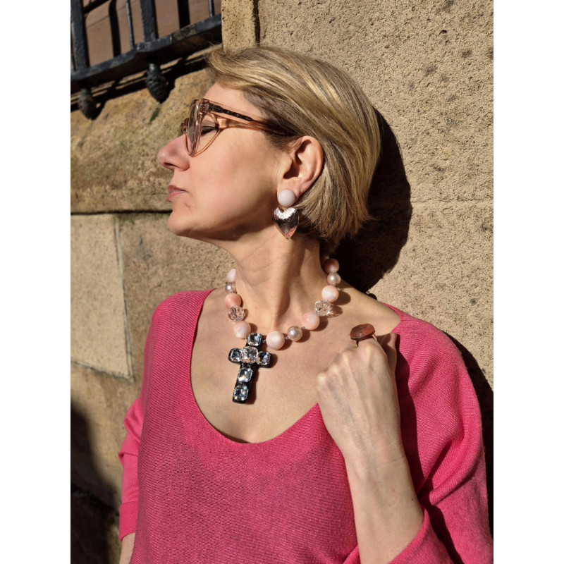 Bijou en cristal, résine et laiton rhodié, finition en acétate de cellulose.
