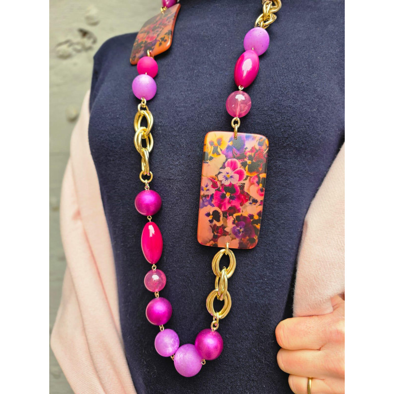 Sautoir DINO Rose & doré - FRANCINE BRAMLI Paris collier