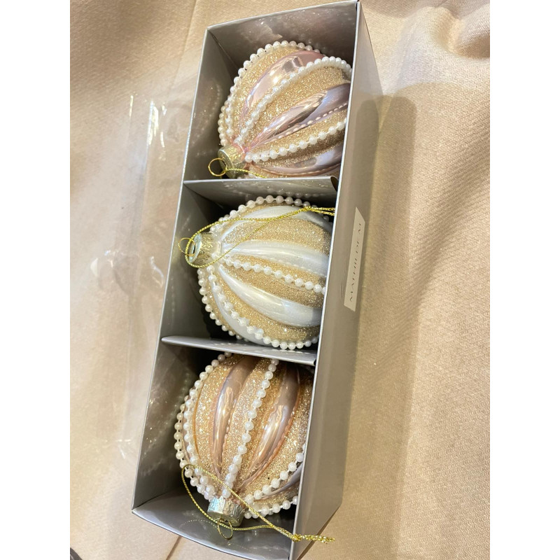 Incontournable pour les fêtes de fin d'année, laissez-vous séduire par ce coffret de 3 boules décoratives Perlées. Que vous les accrochiez au sapin, à une poignée de porte ou une fenêtre, elles apporteront une touche d'élégance et de raffinement à la décoration de votre maison à l'approche de Noël.