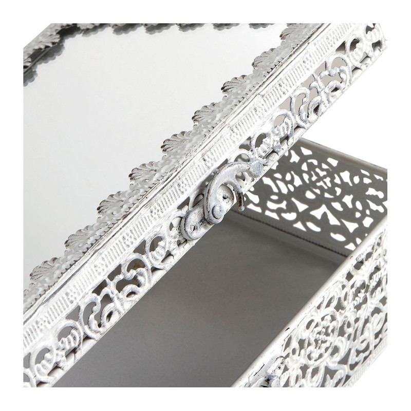 Offrez à vos trésors un écrin raffiné avec cette élégante boîte à bijoux ornée de délicates arabesques ajourées. Son couvercle en miroir apporte une touche précieuse et lumineuse à votre décoration. À la fois pratique et décorative, elle sublimera votre coiffeuse ou votre table de chevet.