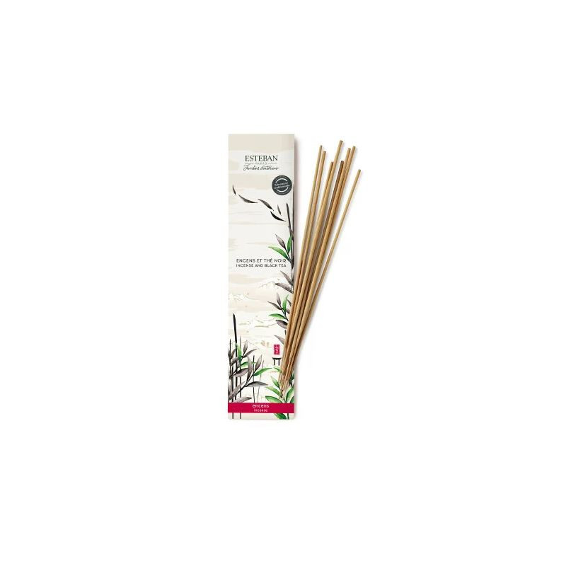Fabrication traditionnelle de bâtonnets d'encens à partir de composants naturels Tiges en bois issues de forêts durablement gérées Déferlement de légère fumée parfumée Parfum boisé frais 20 bâtonnets Étui entièrement recyclable