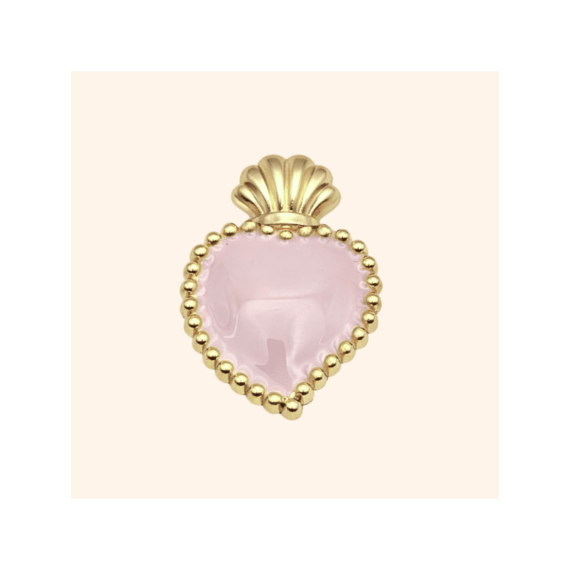 Le bijou de bouton Ex-Voto Rose tendre signe la silhouette avec douceur et assurance.