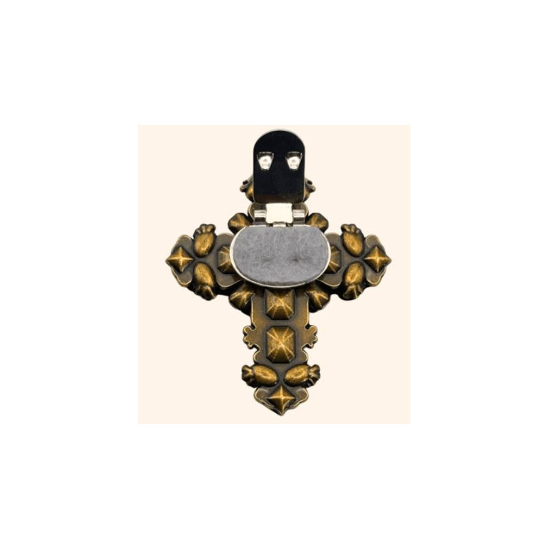 Le Clip Croix Versailles Polychrome s’impose comme une pièce de caractère, à la fois baroque et intensément contemporaine.Signée SUZON Héritage, elle puise son inspiration dans les ornements sacrés du Grand Siècle, réinterprétés dans une palette éclatante et audacieuse.