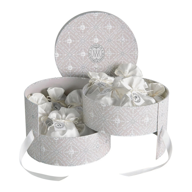 Chaque jour, plongez dans l'univers poétique et raffiné de Mathilde M avec le précieux Calendrier de l'Avent Fête Nacrée. Ce joli coffret réutilisable en boite à bijoux renferme 25 surprises uniques pour attendre Noël en parfum.