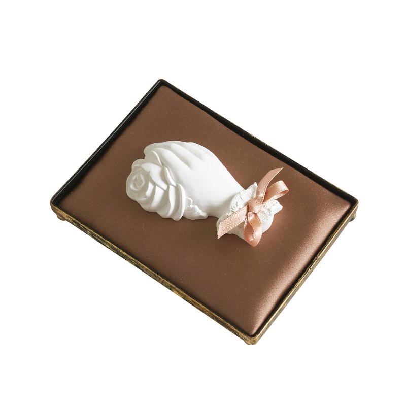 Véritable objet de décoration minutieusement ciselé à la main et parfumé dans nos ateliers, ce décor en plâtre laisse un sillage doux et permanent là où il est posé. Découvrez une manière originale et authentique de parfumer en délicatesse votre maison avec Rose Élixir, un parfum voluptueux et envoûtant, mariage de la rose, reine des fleurs, et des notes poudrées de la violette, sur un lit de muscs blancs.