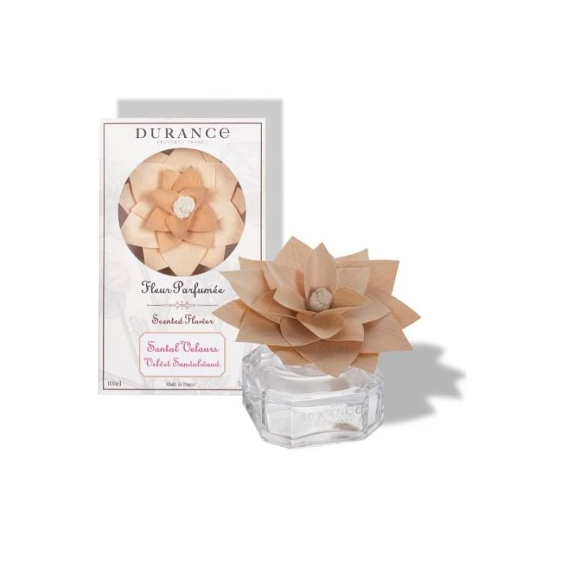 Découvrez la fleur parfumée santal velours qui diffuse des notes élégantes de santal et de bois de figuier adoucies par des notes de musc.