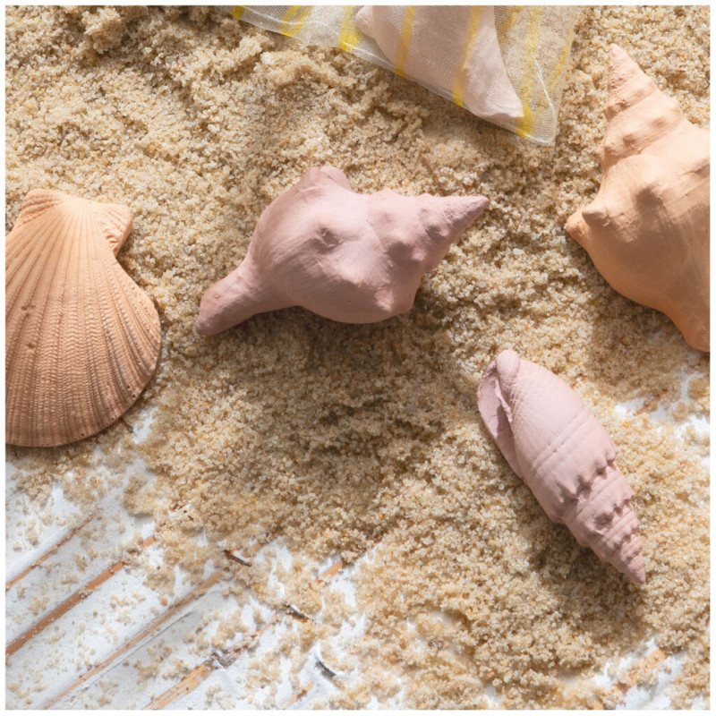 Ce coffret renferme trois décors en plâtre coloré parfumé entièrement réalisés à la main, un spray d'ambiance et un porte-clé en coton. Il est idéal pour parfumer délicatement et pour longtemps toutes les pièces de votre maison ainsi que les petits espaces comme les armoires, tiroirs ou bagages. Le joli cabas deviendra votre pochette indispensable pour la plage !