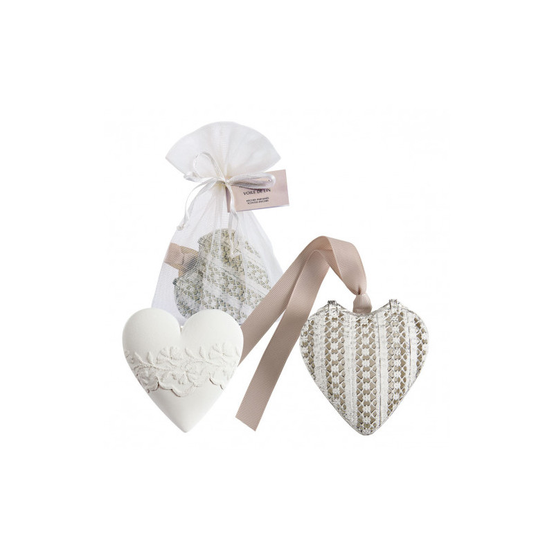 Apportez une touche de romantisme et de délicatesse à votre intérieur avec cet irrésistible bijou décoratif en métal en forme de cœur. Inspiré du charme d’antan, il révèle de sublimes détails ciselés et renferme un joli cœur en plâtre parfumé. Son délicat ruban vient parfaire cette création et lui apporte une touche féminine et élégante, fidèle à l’esprit raffiné de Mathilde M. À accrocher à une porte, suspendre à une poignée ou simplement à disposer sur un meuble.