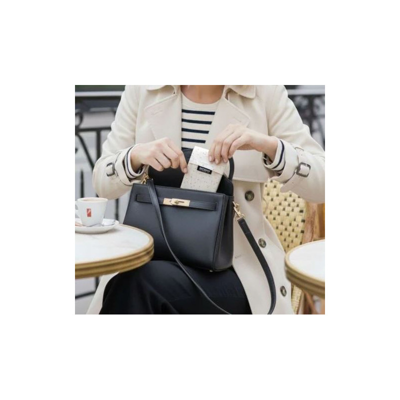 Fermez la pochette et gardez-la dans de petits espaces : sacs à main, sacs de sport, tiroirs, petites armoires fermées...