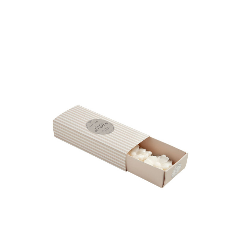 Laissez-vous séduire par Fleur de Coton, une senteur douce et enveloppante née du mariage de fleurs blanches, coton et bois précieux.