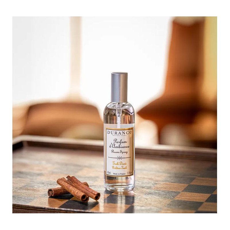 Le parfum Teck Doré dévoile une senteur chaleureuse et enveloppante, où les notes boisées se mêlent à des accents fruités et légèrement ambrés. Dès les premières effluves, il apporte une sensation de confort et d’élégance, avant de révéler toute la richesse d’un bois précieux réchauffé par une douceur vanillée. Une fragrance équilibrée et raffinée, idéale pour créer une ambiance cosy et accueillante.