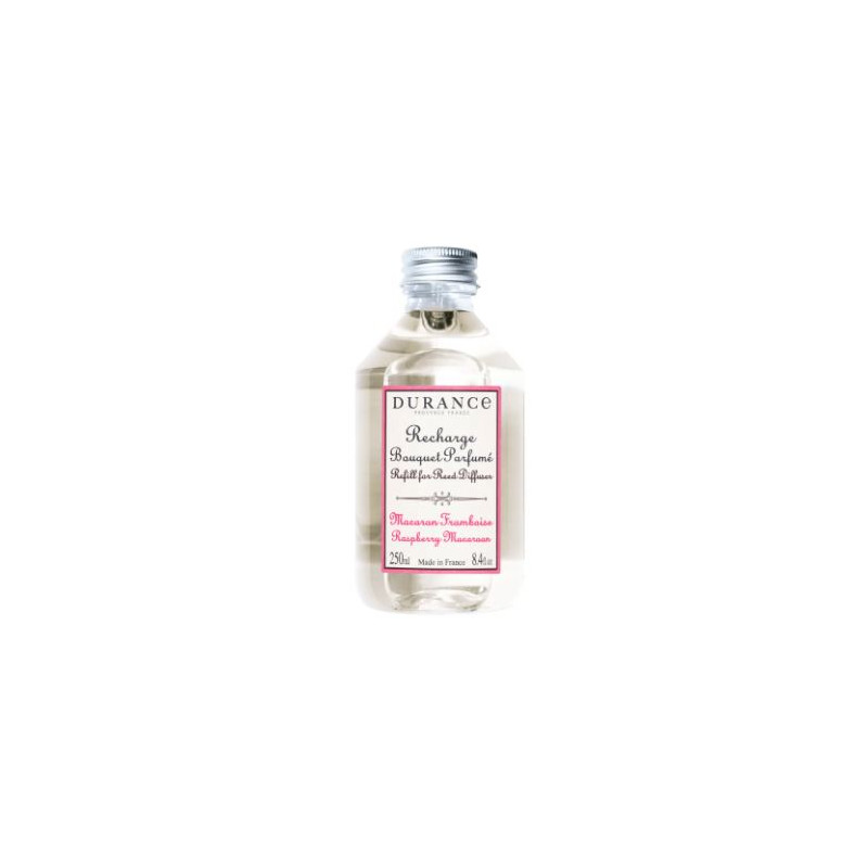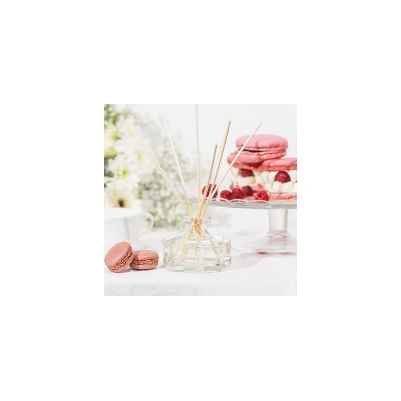 La recharge pour diffuseur macaron framboise enveloppe vos pièces de notes gourmandes de fruits rouges légèrement acidulés et d'accords sucrés vanillés délicats.