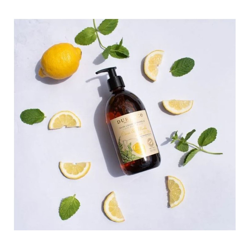 Le savon liquide de Marseille Citron & Menthe pour le corps et les mains, fabriqué en Provence, nettoie la peau en douceur grâce à sa formule. Composée de 98% d'ingrédients d'origine naturelle, cette formule est à base de concentré de savon de Marseille, préparé avec de l'huile d'olive bio de Provence au chaudron selon la recette traditionnelle, et contient également de l'extrait de riz rouge de Camargue et de la glycérine.